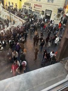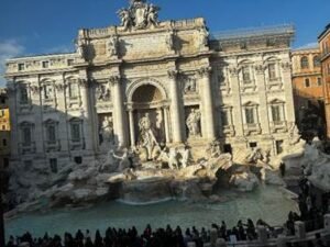 Trevi Fountain is iconic, but almost always busy. A great tip: across the street, there’s a store with a second‑floor window that gives you a perfect view of the fountain without the crowds.